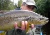 I would get wet for this one too! This brown trout caught by Matt Heron in a small stream is huge!