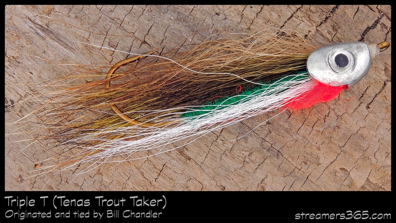 Triple T - Bill Chandler Tied by: Bill Chandler Originated by: Bill Chandler Triple T Streamer Fly Pattern Hook: Edgar Sealey & Sons 1764B 2/0...