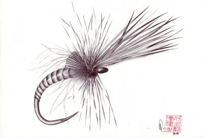 I became Facebook friends with Renato recently and started receiving updates with some beautiful B/W fly drawings, and immediately inquired about a feature in the Fishy Artist series. Renato indulged me and here are a few samples of his work and some answers to my questions.