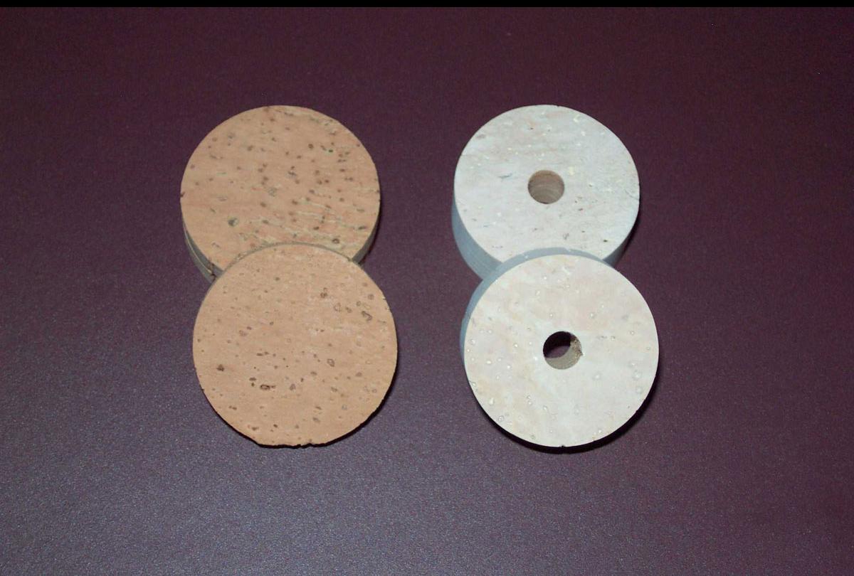 Rubber Cork. Mixture of cork granulates and rubber. Higher rubber content than burl to achieve better dampening characteristics. Perfect material for “framing” the handle for durability reasons and as a material for fighting butt ends. Heavier than cork and burl-cork.