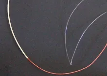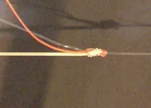 - Here the coating has been stripped off the fly line, I painted it orange so you can see it in the knot.