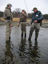 On the other hand, when it settles and the murkiness of the water reaches a certain low level, we celebrate, because it's a well-known fact that the boots-just-barely-visible state of the water will create close to perfect conditions for sea trout fishing. The fish will be hunting ferociously in the shelter of the dirt and aggressively attack most things that move—including our flies... hopefully.