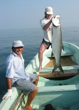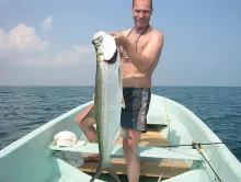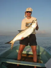 Opposite Lars Mathiessen. Lars had good luck... ehr... showed excellent skill with the big ones and was by far the angler in the company who hooked and landed most large tarpon in the open ocean. He also did fine on the babies, but with the big fish in the ocean he severely outfished the rest of us.