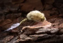 Thorax Kapok rolled in polypropylene mesh and Troutline black pepper squirrel dubbing