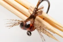 2. Catch in three pheasant tail fibres, bind down up the shank and trim off the waste.