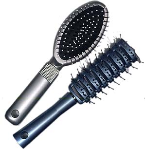 The plucked (top) or cut (bottom) eyes together with the doom of the hairbrush. Notice how some brushes come with white tips. Others are colored, translucent or any variation in between. Always be on the lookout for cheap hairbrushes.