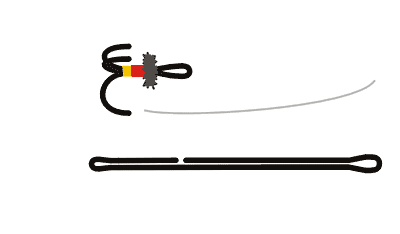 When the treble is dressed it is connected to the shank and the rest of the fly is tied on the whole assembley.