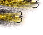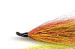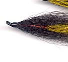 This is done by cutting an appropriate - small - bunch of each color, mixing them by hand and carefully stacking them in a hair stacker. The wings are then tied in in three bunches on three sides of the shank after the body is finished. This makes it much easier to control the distribution of hair around the shank.