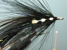 Another variation on large saltwater flies from the hands of Pete Gray. Mainly for striped bass, but useful for other specied too. This is the sinister version for fishing in darkness - or for dead drifting at O'dark thirty as Pete puts it.