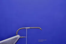 Start the thread at the halfway point. This point is important because it is the reference for the start of the body and front of the hump, later on.