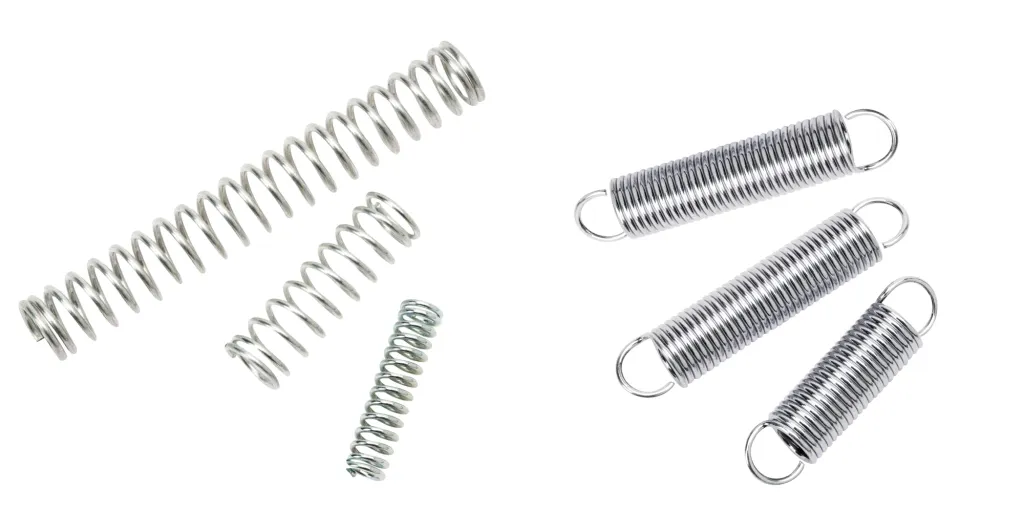 You need tension springs like the ones on the right, preferably with the end coils bent into eyes already.