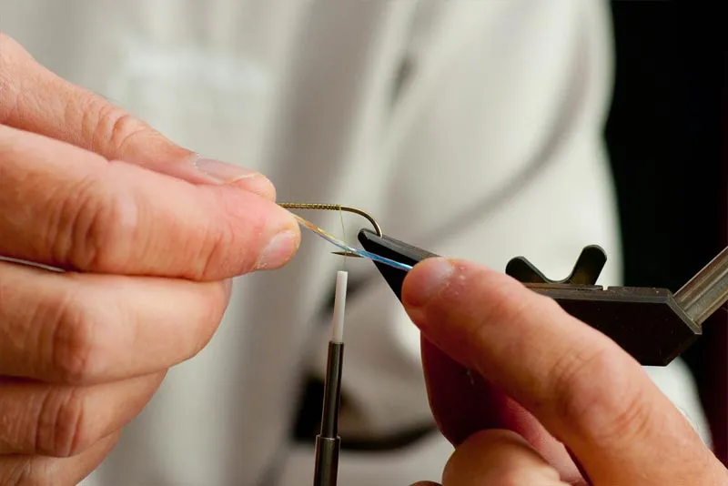 Fold a few straws of flash and pass them up under the thread to the top of the hook shank