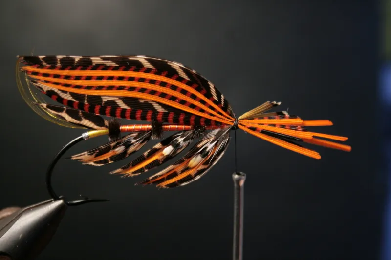 Use some tight wraps and support the wing while you cut off the excess material. Then use a few extra wraps to tie down the material in the head. Whip finish the 6/0 thread. And switch back to a 8/0.