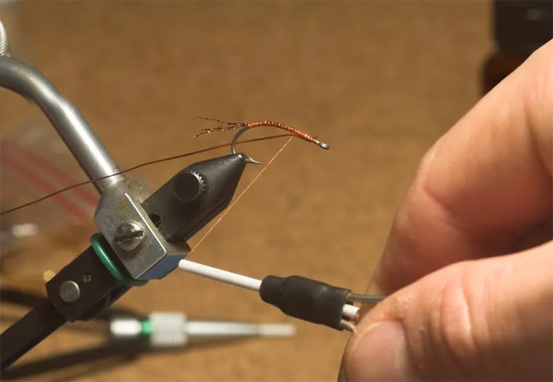 Tie in the rib in front of the hook shank and tie it down the full length of the body