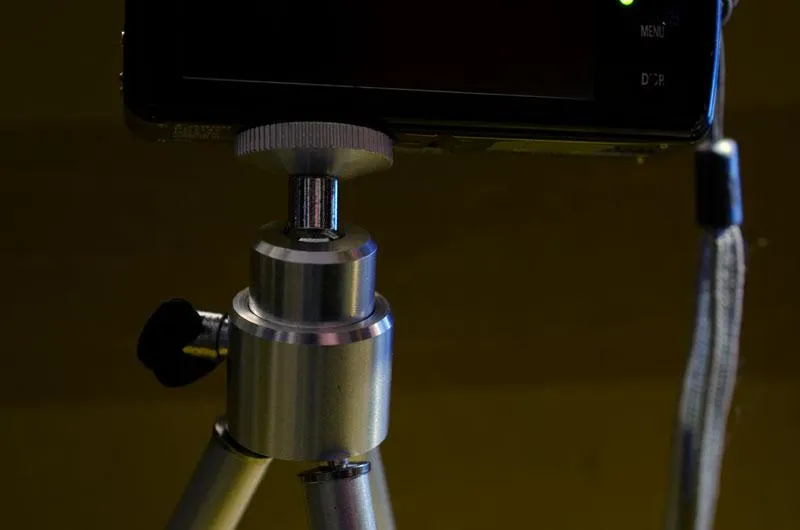 All cameras have a tripod screw thread in the bottom, and cheap tripods for table use can be found on Amazon and eBay and in most camera shops.