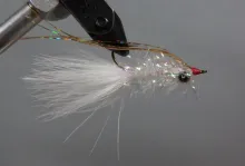 A fly fisher should next choose the right fly for the appropriate part of the water column. The bottom bass requires a weighted fly that resembles a crayfish or some other small dusky creature, such as a sculpin or goby, which scuttles along the bottom. “Scuttle” describes the action rock bass find irresistible. After the fly has been placed at the desired casting target and depth, an erratic retrieve that mimics the bottom bouncing antics of a spooked crayfish should commence. Time has proven three patent patterns most effective for this technique: Harry Murray's Strymph, Dave Whitlock’s “NearNuff” Crayfish, and Gordon Mackenzie of Redcastle’s excellent Deer Hair Freshwater Shrimp.